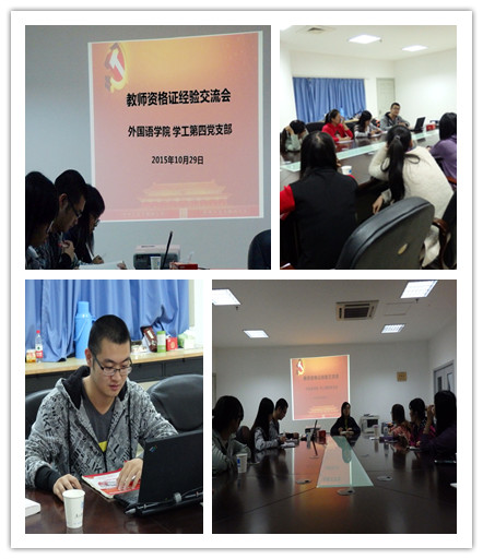 2015年下半年教师资格证考试逼近,而今年学院报考人数众多,为解答学生疑惑,指导学生科学复习,顺利通过考试,外国语学院学工第四党支部利用资源优势,充分发挥中国共产党“全心全意为人民服务”的宗旨,发挥党员的先锋模范带头作用,近日,在圆楼420会议室开展了“党建促学风,学风固党建——教师资格证考试经验交流会”主题党日活动。学院学工第四党支部书记高艳丽、支部副书记刘鹏辉、支部成员和报名参加考试的同学们参加了此次交流会。