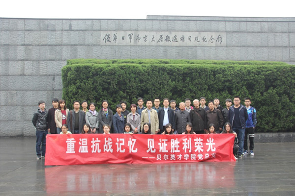 4月6日下午,贝尔英才学院党总支组织师生党员参观了侵华日军南京大屠杀遇难同胞纪念馆。深切缅怀革命先烈,增强党员的爱国主义热情。贝尔英才学院党总支书记张晓明、党总支委员方萍等总支成员参加了教育活动。侵华日军南京大屠杀遇难同胞纪念馆副馆长陈俊峰,校关工委副主任徐如荣、张开理,离退休职工处党委书记褚晓红、退休教师张和明应邀参加活动。