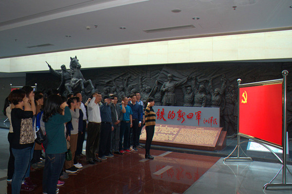 参观结束,全体党员教师在纪念馆内举行了重温入党誓词集中宣誓活动,在鲜红的党旗下,再次感受党员的责任、使命和荣耀,不忘初心、继续前行。
