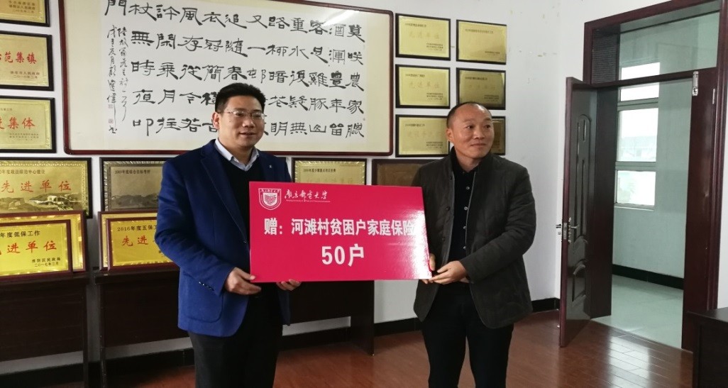 吴城镇党委书记吴军涛、镇长赵文军、村第一书记梅琼及省委驻淮阴区帮扶工作队的相关负责同志,图书馆、档案馆党总支书记杨道林、图书馆馆长钱军、档案馆馆长张洪波、图书馆副馆长储金节、档案馆副馆长印丹榕以及各支部书记等出席了捐助仪式,图书馆、档案馆党总支捐款给河滩村集体用于救助50户因病致穷的村民购买家庭保险。河滩村是我校挂钩帮扶省定经济薄弱村,因病致贫农户比例占低收入户一半以上。南邮扶贫干部梅琼对河滩村近两年的挂钩帮扶情况作了简要汇报,省扶贫工作队和吴城镇负责同志分别对南邮在扶贫工作中作出的巨大贡献表示感谢,特别是对梅琼的敬业精神,较强的工作能力,以及所取得的优异成绩进行了充分肯定。之后,双方就完善扶贫工作、抓好基层党建工作等进行了深入交流。