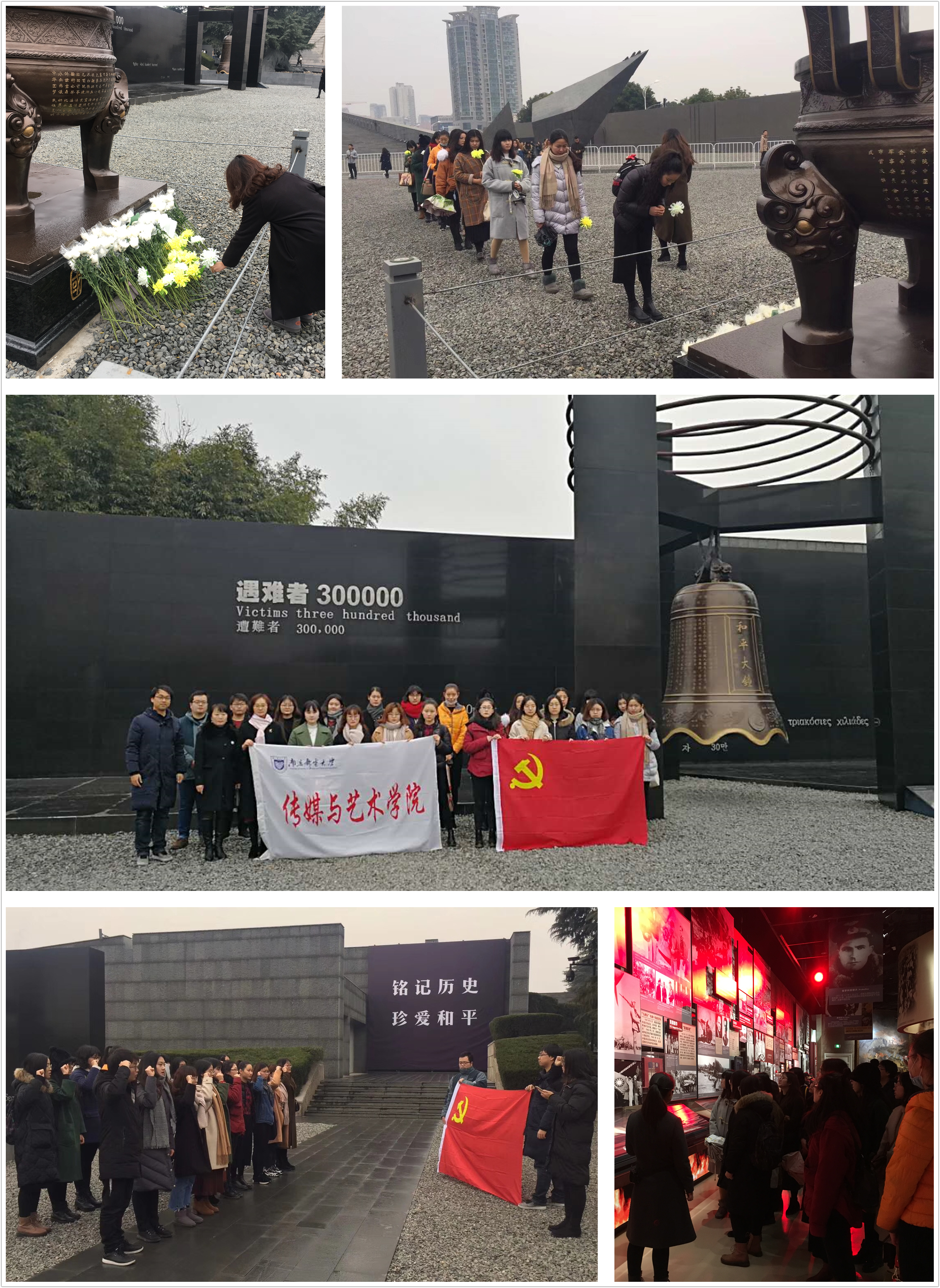 2017年12月27日,传媒与艺术学院党委组织全体学生党员赴侵华日军南京大屠杀遇难同胞纪念馆进行爱国主义教育,同时本院今年新接收的全体党员在纪念馆警示前进行了入党宣誓。学院党委书记黄婷婷,副书记刘远,学生第二党支部支部书记朱晓萌,学院组织干事姚继周参加了活动。