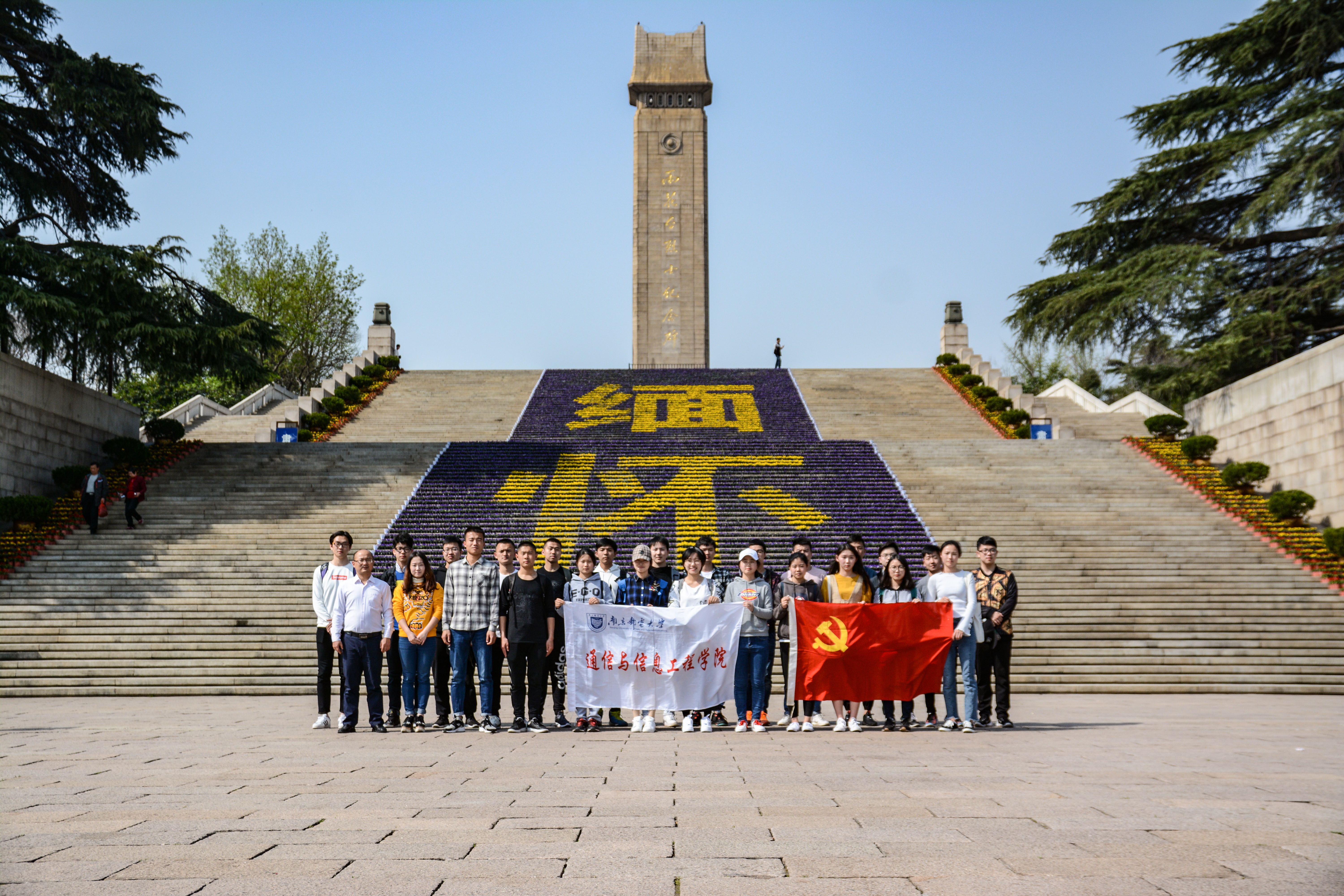 清明节来临之际,为缅怀革命先烈,提高师生的党性修养,使学生党员深入接受革命传统教育,3月28日下午,在丁杨老师和方军老师的带领下,南京邮电大学通信与信息工程学院学生一支部的25位学生党员来到南京雨花台革命烈士陵园,开展主题为“缅怀革命英烈•传承红色精神”的党日活动。
