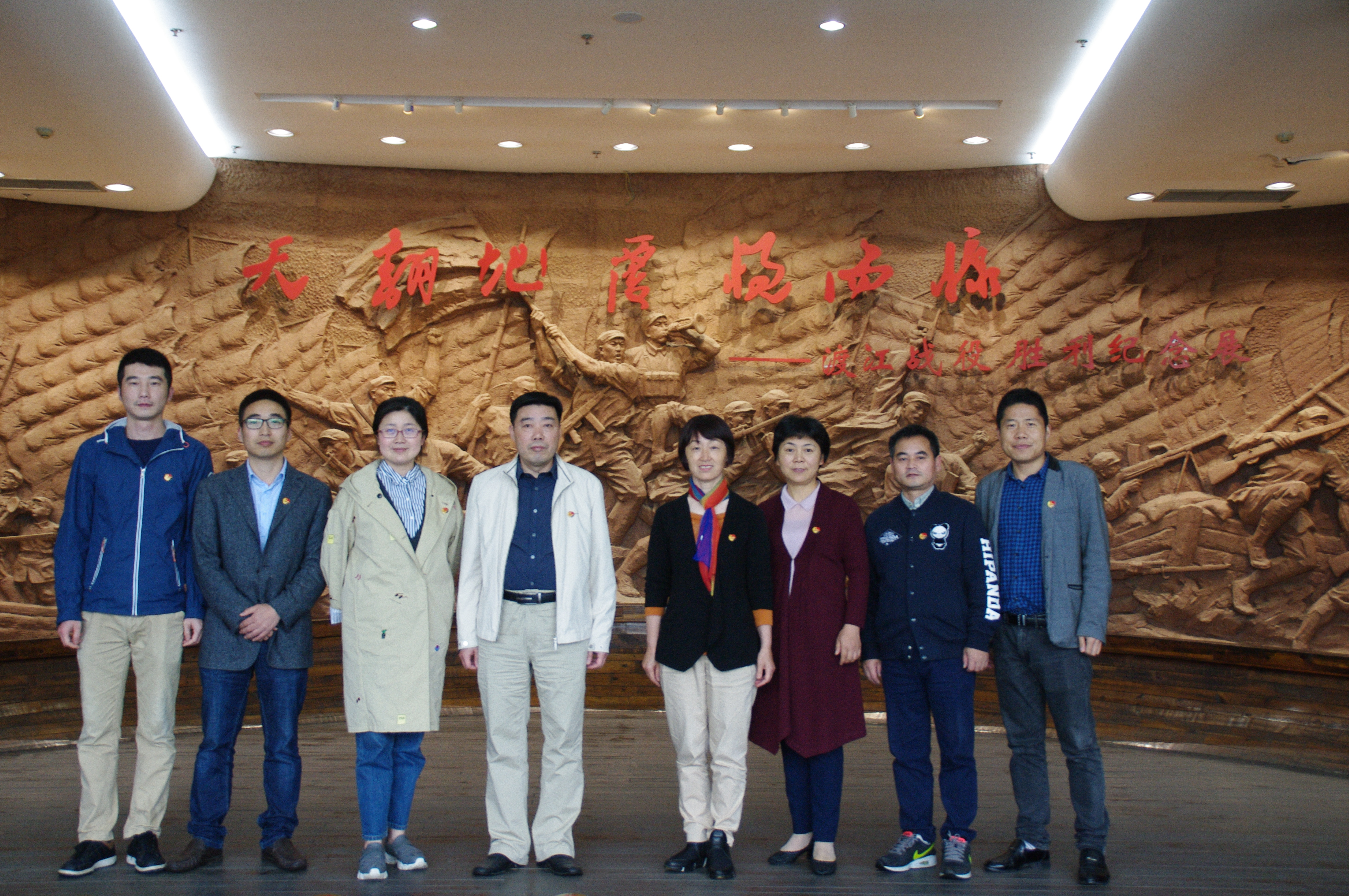 4月23日是渡江战役胜利69周年纪念日,也是南京解放69周年纪念日,在这样一个值得纪念的日子里,为了贯彻校党委全面从严治党部署会精神,离退休职工处党委十三支部(在职支部)全体党员冒雨来到南京渡江胜利纪念馆参观学习,开展“不忘初心,牢记使命”的主题党日活动,离退休职工处党委书记褚晓红、处长李其芳参加活动。