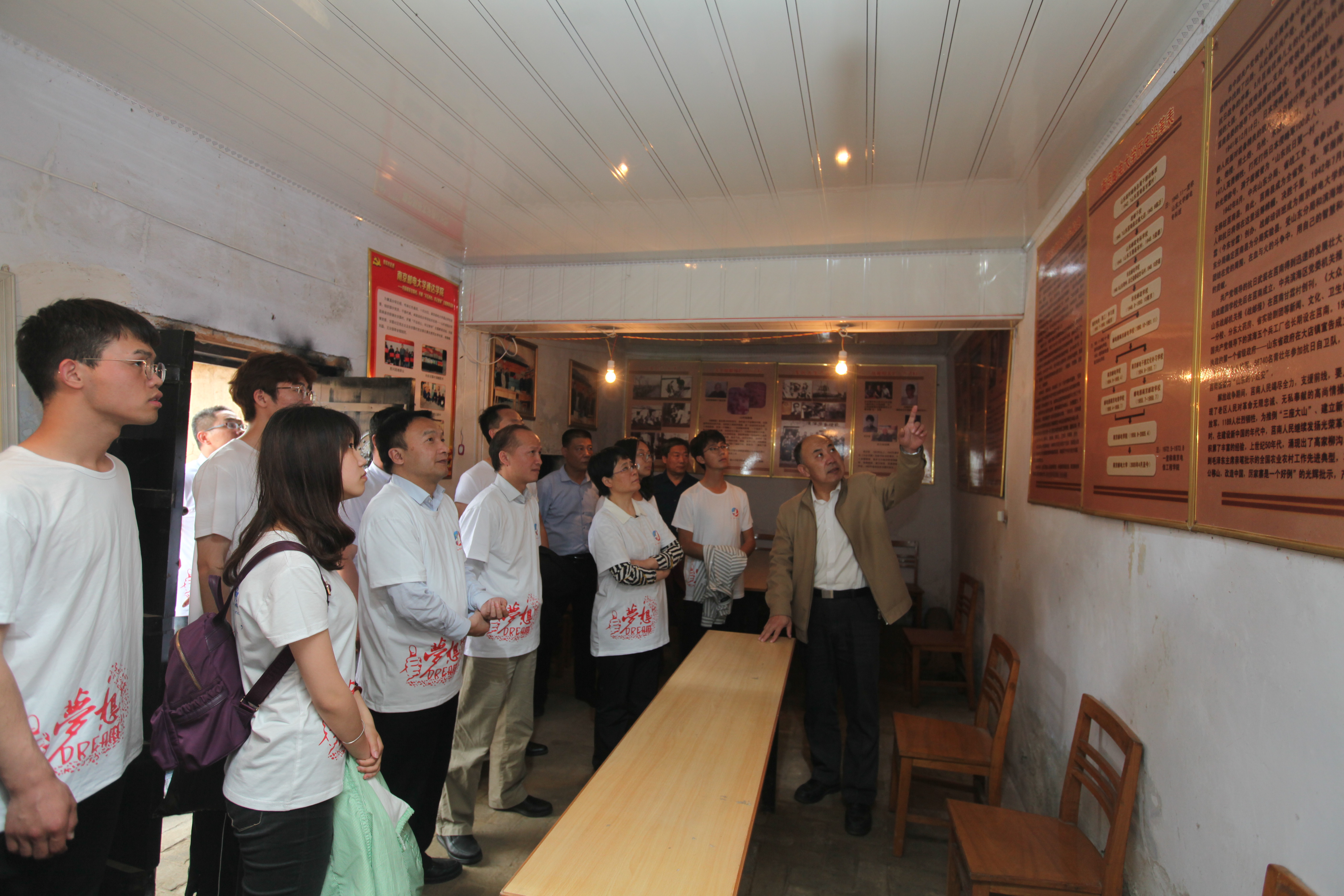 在东甘霖村,莒南县县委党校副校长赵国梁向大家讲述了山东抗日根据地的革命事迹,尤其重点讲述了战时通讯发展史。赵校长指出,战邮创新性地将发行、宣传与交通三部分相结合,极大地促进了战时的通讯宣传,有时“一份报纸的威力比一个炸弹威力更大”。他说,党性是最美的人性,实地了解走访这些革命遗址,听取他们的故事,在未来学习生活中就不可能颓废,这样的活动也是最好的党课。入党积极分子、互联网+“邮梦人”团队队长何思洁表示:参与此次党日活动,学习了沂蒙精神和战邮精神,思想上受到了洗礼,感受到了作为南邮人的骄傲,同时也会更加坚定去做一些事情,把自己创新创业梦融入伟大中国梦。