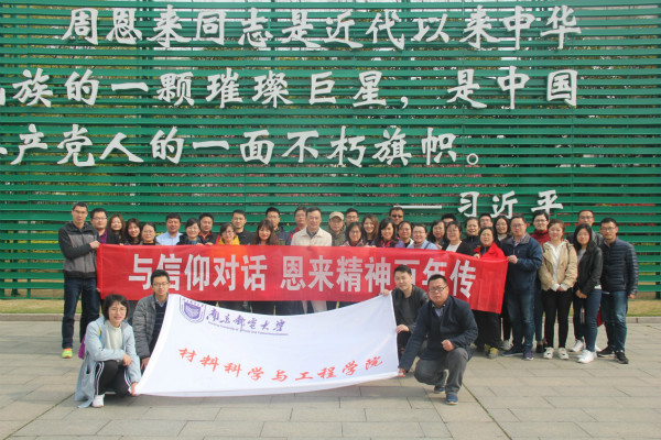 为进一步贯彻执行党的十九大精神,坚定党员责任意识,加强党性修养,3月29日,材料科学与工程学院党委组织党员和教师参观周恩来纪念馆、周恩来故居,开展“追寻伟人足迹、坚定信念初心”主题党日活动,缅怀周恩来总理无私忘我、鞠躬尽瘁、亲民爱民、朴素清廉的伟大一生,实地感受周恩来总理“为民、务实、清廉”的丰功伟绩。