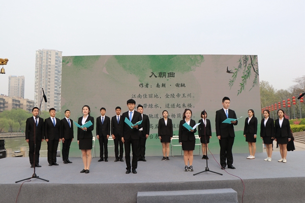 活动启动仪式上,社会与人口学院烽火诵读队朗诵了谢朓的《入朝曲》与辛弃疾的《水龙吟•登建康赏心亭》,在声声诵读中,仿佛穿越了历史长河与先贤进行对话。启动仪式的高潮是所有参加人员一起朗诵由南京市地方志学会副会长、著名文化学者薛冰为此次活动撰写的《清明先贤祭》一文,将春天气息、文化味道与清明祭扫踏青习俗相结合,让每位参与者都感受到了悠远文脉在南京城里生生不息的传承。