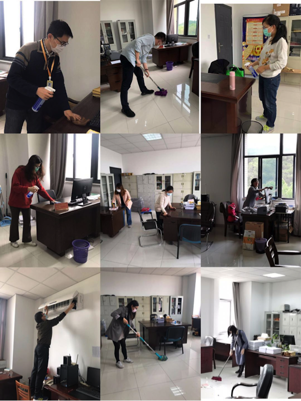 经济学院党委在寒假期间用疫情防控党费专款集中购置了75%酒精、84消毒液、一次性手套等卫消防护物资,开学时向各系、办统一分发。党员在支部书记的带领下对办公环境和空调系统进行彻底清洁,对座椅、办公桌、电脑等物体表面进行预防性消毒处理,将所有场所开窗通风,确保整体操作的科学性、规范性和有效性。本次集中打扫之后,经济学院各党支部将以“支部负责制”形式建立各系部、办公室等办公场所卫生管理长效机制,保持环境卫生,杜绝死角盲区,定期全面消杀,保持办公场所的优良环境。