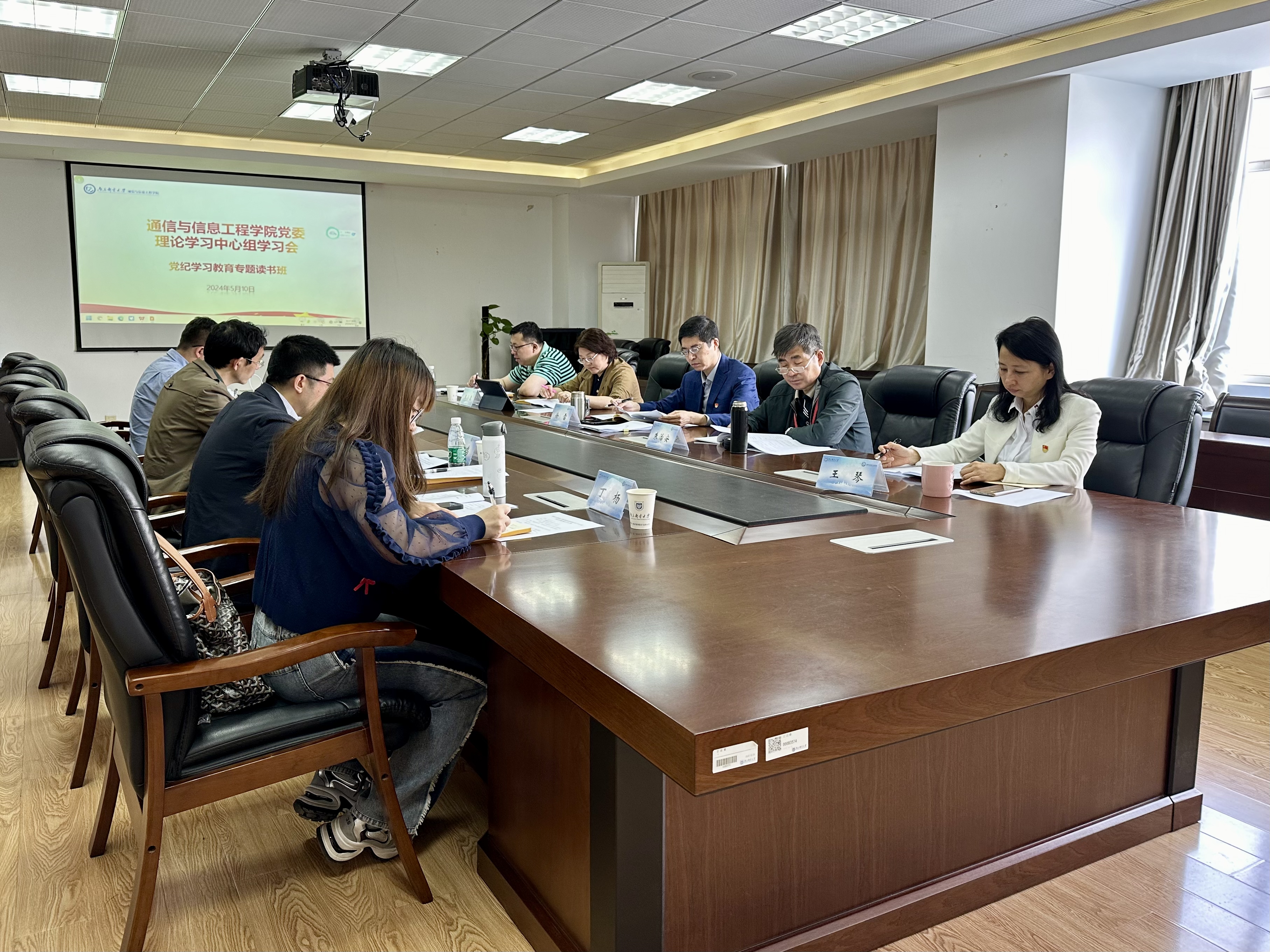 5月10日上午,通信与信息工程学院党委理论学习中心组召开党纪学习教育专题读书班学习会,深入学习交流《中国共产党纪律处分条例》“政治纪律”“组织纪律”两章。学院党委书记、党委理论学习中心组组长徐雷主持学习会。校党委第一巡察组副组长朱治安列席会议巡学旁听。