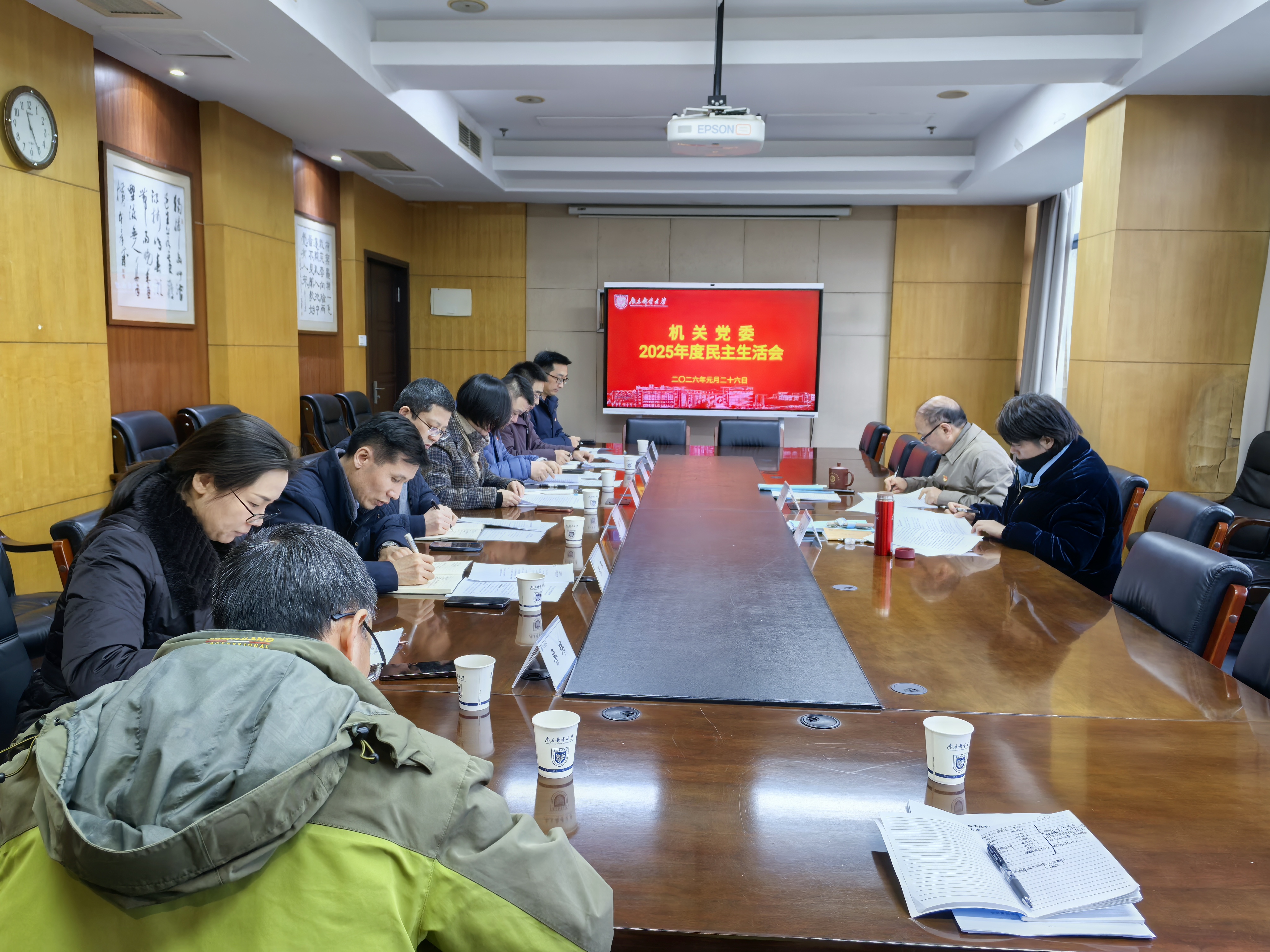 2026年1月26日上午,机关党委在仙林校区行政楼第二会议室召开2025年度民主生活会。校党委副书记王友国、物联网学院党委书记邓艳华到会督导。机关党委领导班子全体成员参加会议。会议由机关党委书记张宏主持。